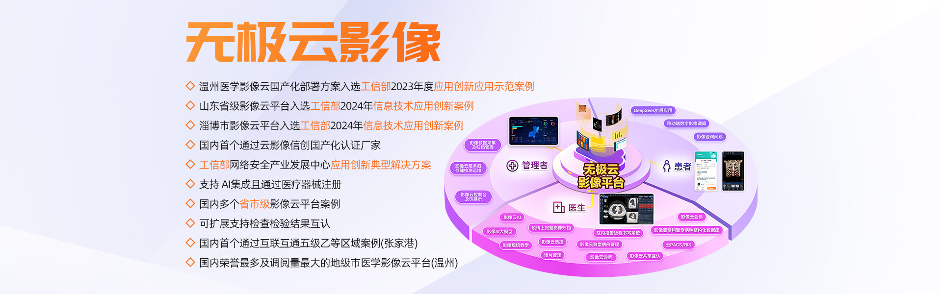 擁有多家年門診量400多萬以上人次的大型三甲醫院全院PACS及云影像案例,多個省市規(guī)模醫學影像云平臺案例,承建的溫州市醫學影像云平臺榮獲浙江省最多跑一次改革十佳案例、省領跑者定位題詞、全國惠民便民優(yōu)秀案例、基于影像云AI分析試點單位等榮譽。